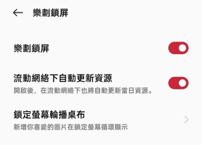 打開 [流動網絡下自動更新資源],不間斷更換鎖屏壁紙,但注意會消耗個人流動網絡數據。