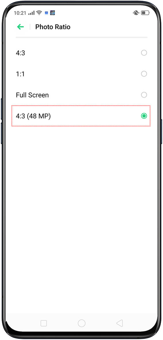 ثم اضغط (نسبة الصورة) واختر (4:3)48 ميجا بيكسل