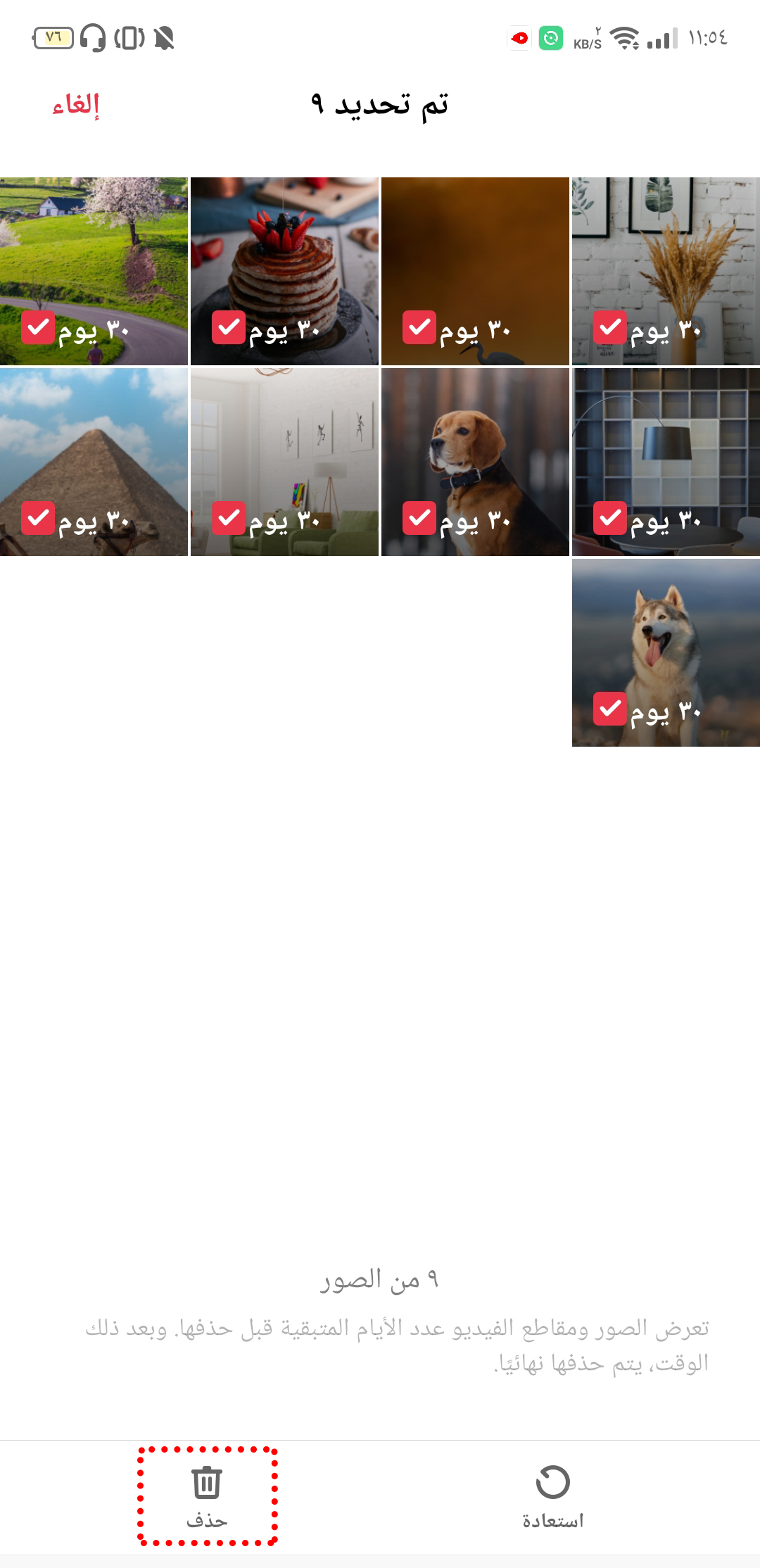 الصور والفيديوهات المحذوفة ستظل محفوظة في ألبوم "المحذوف مؤخرا" لشهر واحد، في حالة مسحهم بالخطأ ورغبتك في استعادتهم.