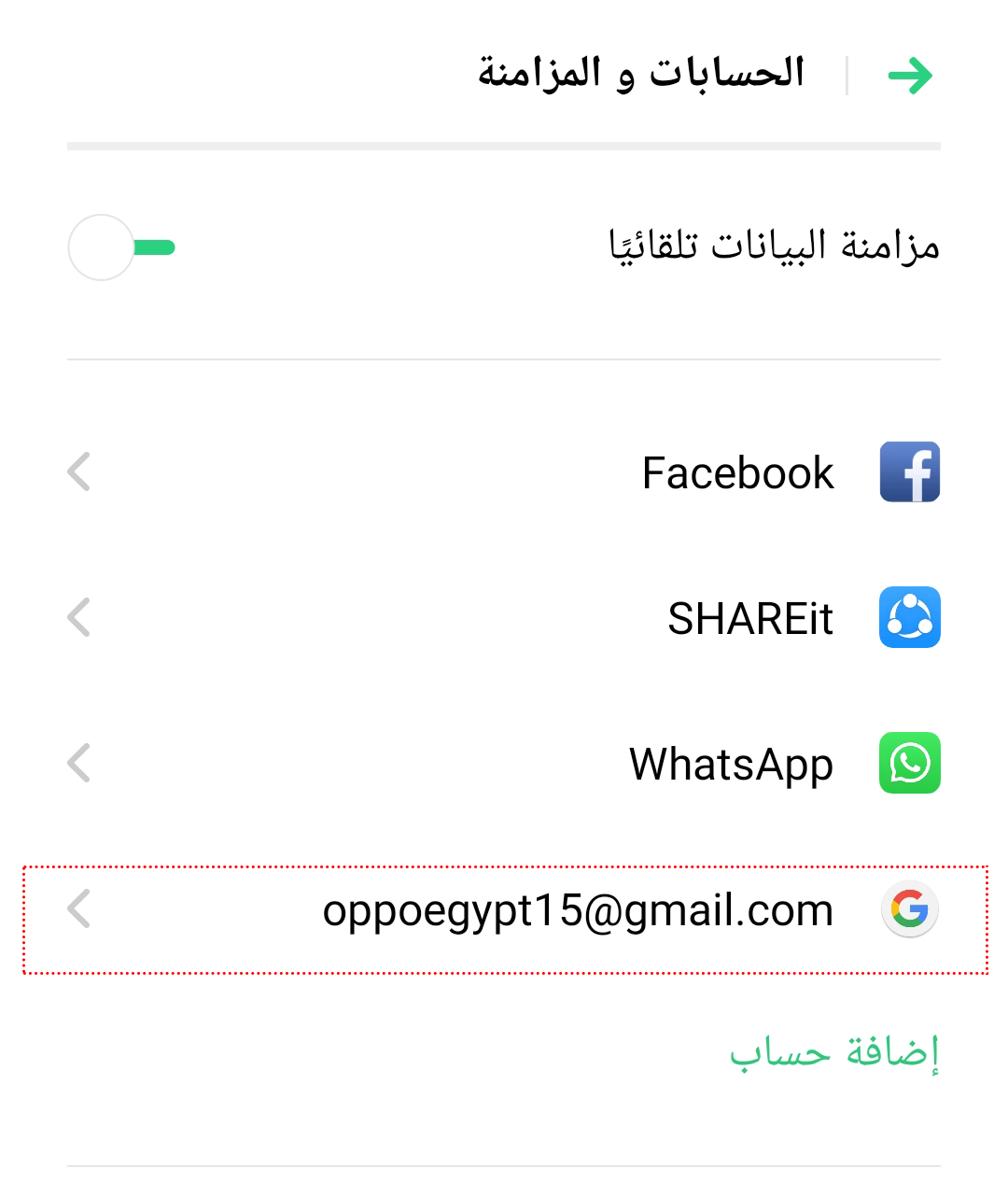 1.اذهب الي [الاعدادات] > [الحسابات و المزامنة].