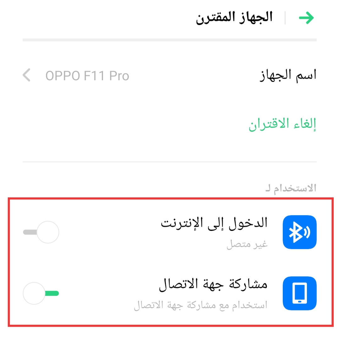 حدد ما يمكنك مشاركته مع الاجهزة المقترنة من خلال البلوتوث