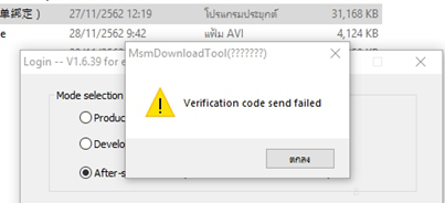 เครื่องมือเลือกโหมดดาวน์โหลด SMT ซึ่งต้องการข้อมูลการตรวจสอบ |