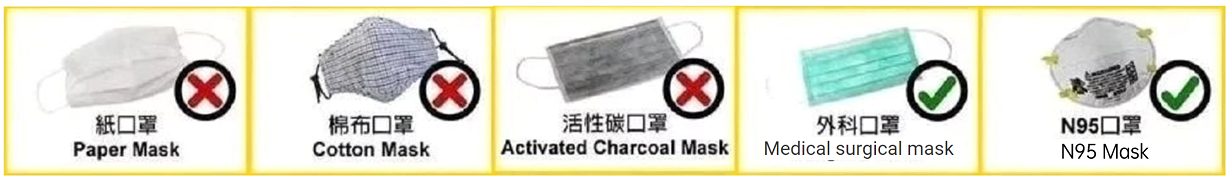 3.surgical ႏွင့္ N95 mask ကိုတပ္ဆင္ျခင္း(ေအာက္တြင္ ေဖာ္ျပထားသည့္အတိုင္း) ။