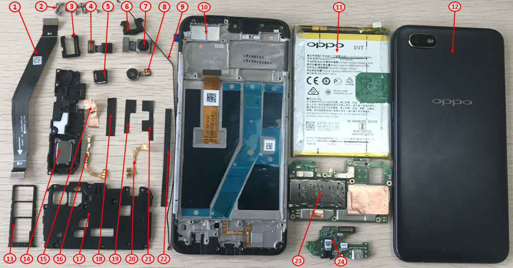 | 12 | Battery cover assembly | CPH1923 red (for after-sales) | SET | 1 |