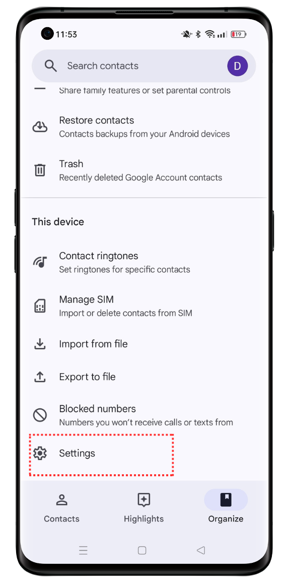 For newly set devices, on your OPPO phone, go to the [Contacts] app, select [Organize] > [Settings]. In settings, tap [Your info] and enter the details you wish to add. Once done, tap [Save].