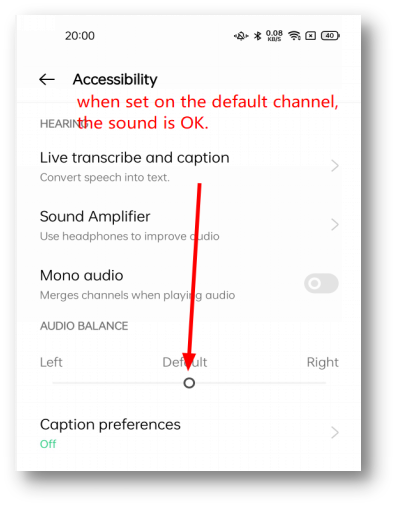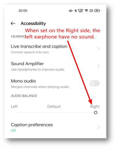 โหมดหูฟัง ลำโพงของเครื่อง หรือ โหมดหูฟังBluetooth เวลาเปิดเพลงหรือเล่นเกมส์แล้ว ผลปรากฎว่าไม่มีเสียงที่ข้างใดข้างหนึ่ง (ข้างซ้ายหรือขวา) หรือ เสียงเบา