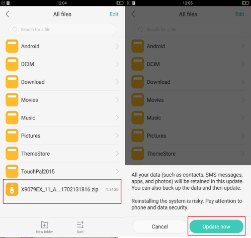 1. คัดลอกแพ็คเกจอัพเกรดไปยังโทรศัพท์ของคุณ: