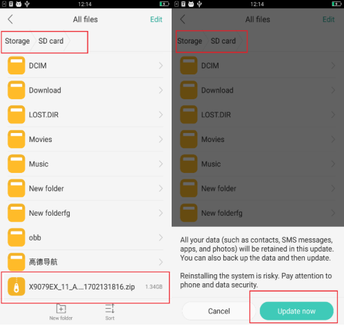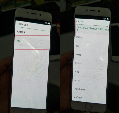 A. การจัดการไฟล์ - ไฟล์ทั้งหมด - การ์ด SD - ค้นหาแพ็คเกจการอัปเกรดที่สอดคล้องกันและคลิกเพื่ออัปเกรด