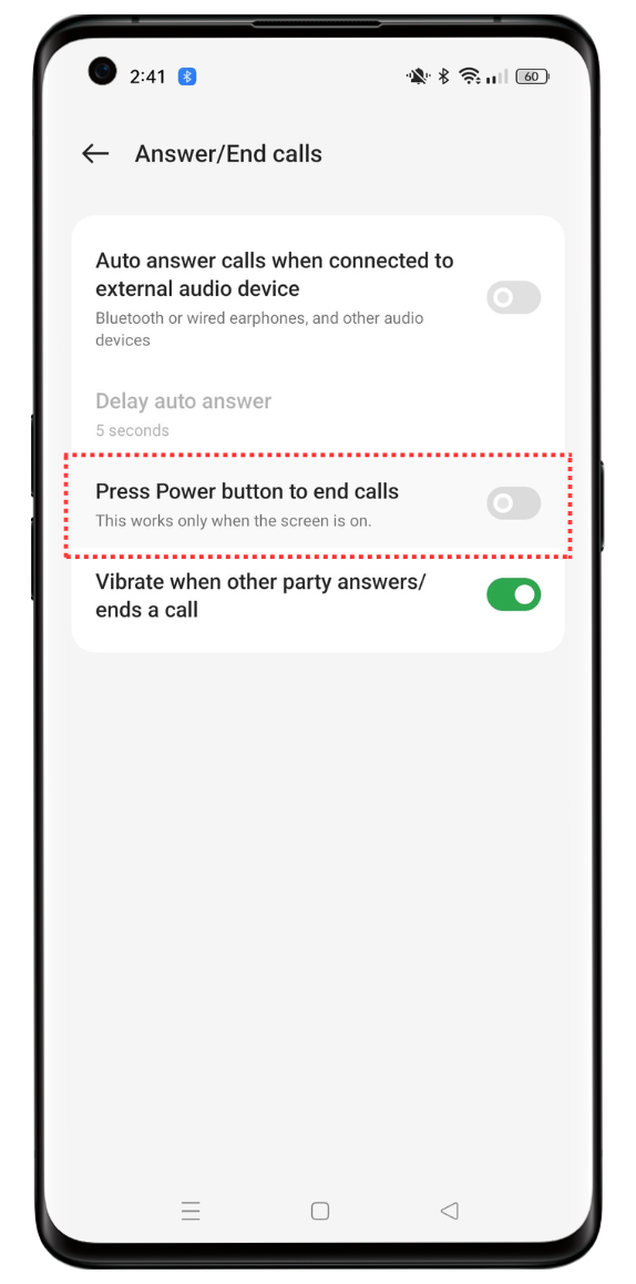 Using the Power button to end calls is a convenient way to end calls. However, if you've turned this off from the settings and the call still drops after pressing the Power button, you may need to check your OPPO phone's settings again.