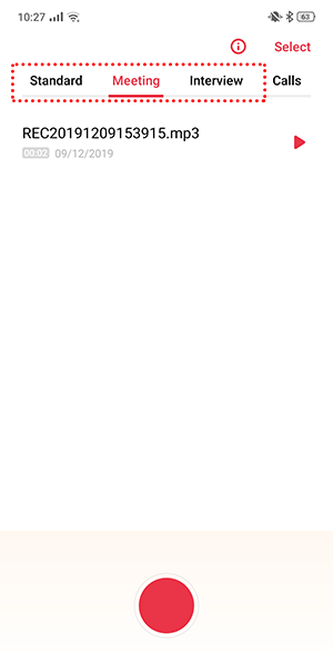 Situation: You're wondering if you can select the type of recording on the recorder app.