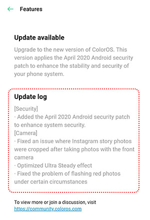 Can I See the List of Changes for a Software Update on OPPO Phone?