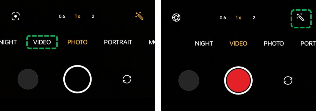 Open [Camera] > Switch to [Video] > Select [] in the lower right corner and swipe to switch video modes.
