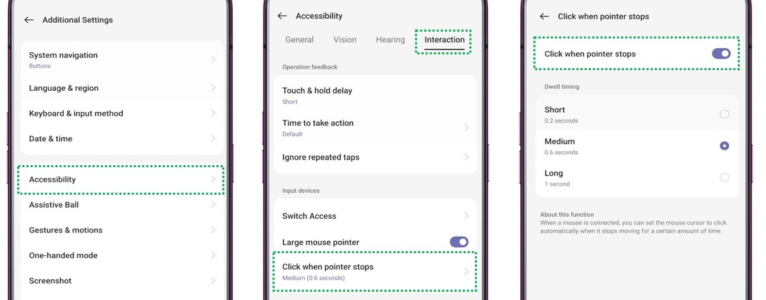 Do you like to use a mouse with your phone for more accurate taps? If you are using any Bluetooth or USB mouse to operate your OPPO phone, then you can set the cursor to take action automatically when the cursor stops moving for a certain amount of time. This feature allows you to click on a certain option without physically tapping your mouse button. This feature can be helpful for users with motor impairments. Follow the article below to learn more about clicking when the pointer stops.