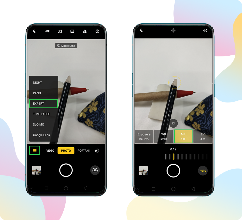 - Tap EXPERT mode on the Camera app, tap AF then swipe left or right to the best MF value, or tap the object to auto focusing. Tap the Shutter button, and here's the small world you discovered. You might as well add filter or effects to it.