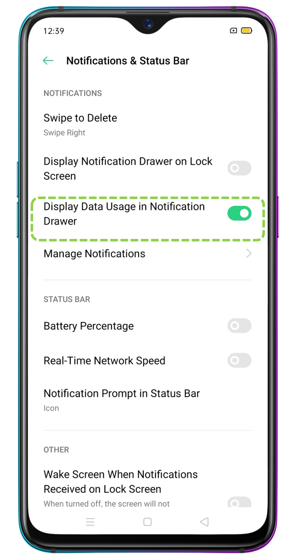 Display Data Usage in Notification Drawer