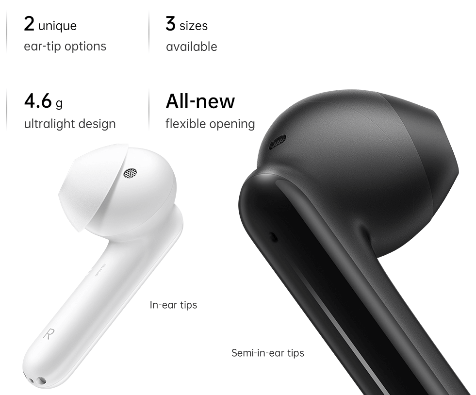 Every set of Enco Free has 3 pairs of ear tips with 3 different sizes (the size S ear tips are pre-installed on the headphones). You can choose the right ear tips for the most comfortable feel.