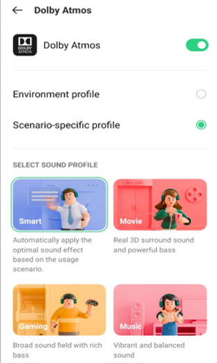 Applicable to: OPPO devices with Dolby Atmos. You can check this by going to [Settings] > [Sound & Vibration] > [Dolby Atmos].