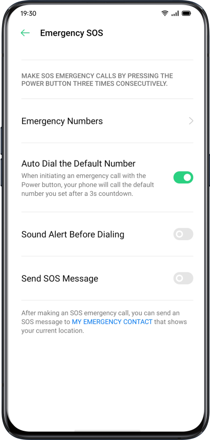 ColorOS cares about users' personal security. "Emergency SOS" is a feature that is aimed to help you make emergency calls and send SOS messages more conveniently.