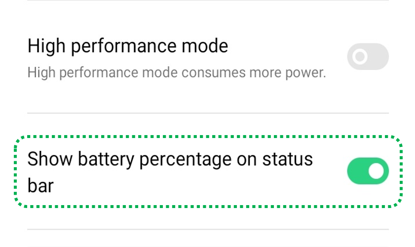 Tap [Battery] > Enable [Show Battery Percentage on Status Bar].