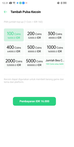 Masuk ke “Theme Store” lalu “Saya > KoKo Coin > KoKo Coin Center > Isi ulang KoKo Coin”