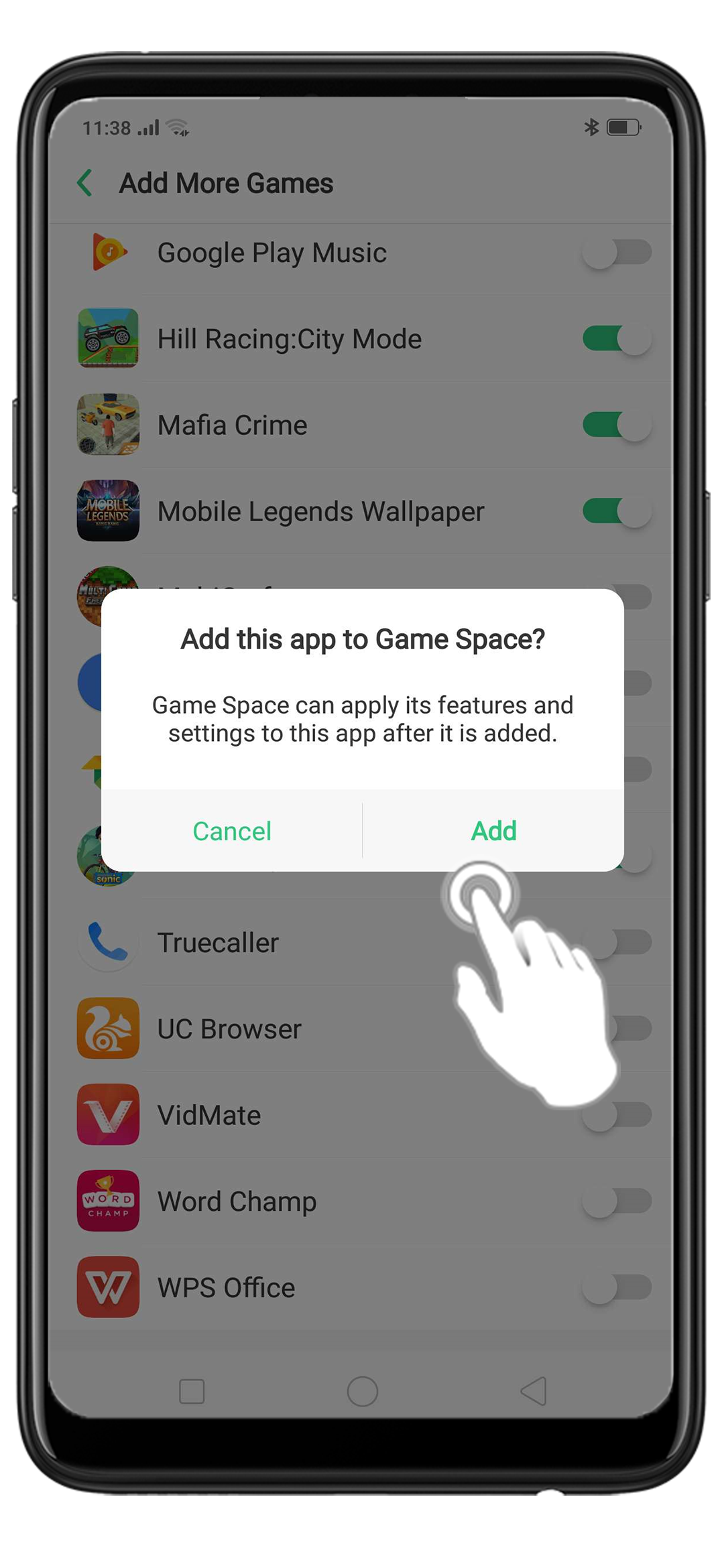 ] icon to add games that you’ve downloaded but are scattered on your homescreen then toggle to enable the game you want to transfer to Game Space.