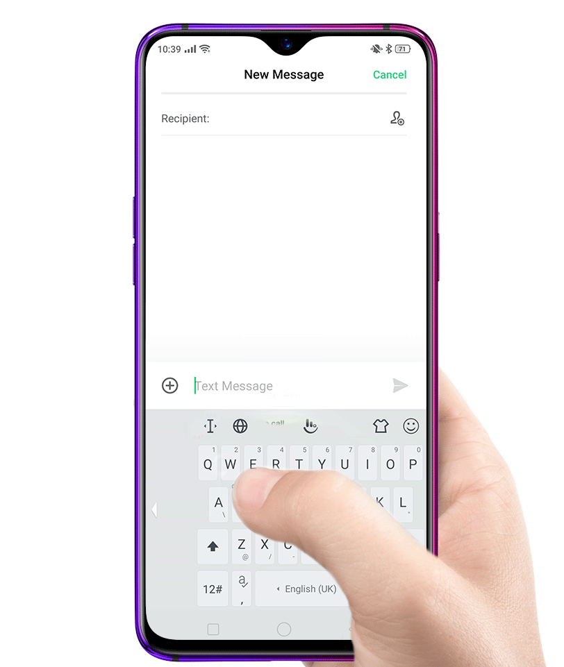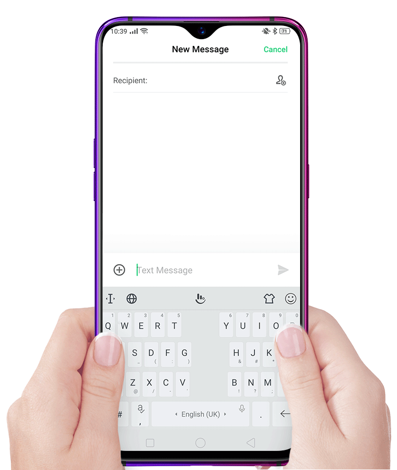 Shrink the keyboard to type using one hand with one-handed mode.