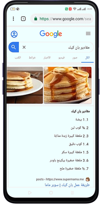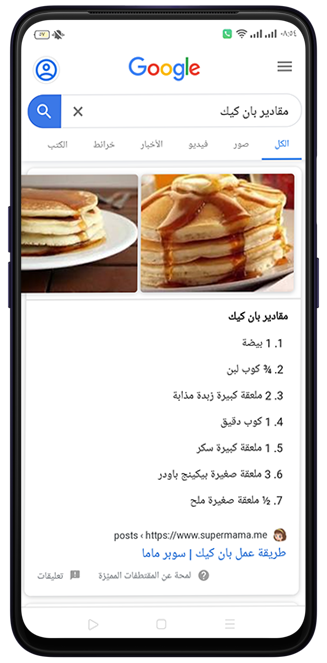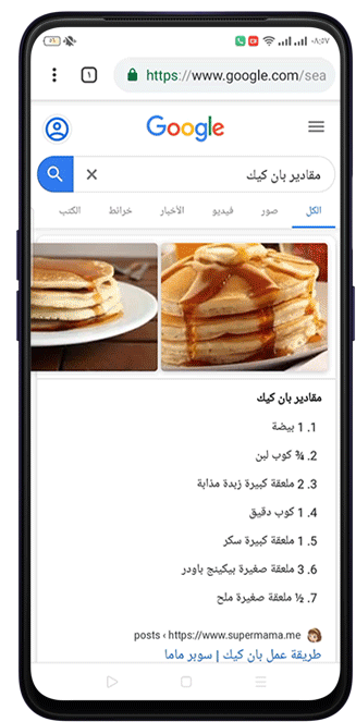 اضغط مع الاستمرار على كلمة أو عبارة حتى تظهر رسالة منبثقة أسفل الشاشة. ثم ، اضغط على الارجاع للعوده الي صفحة نتائج البحث .