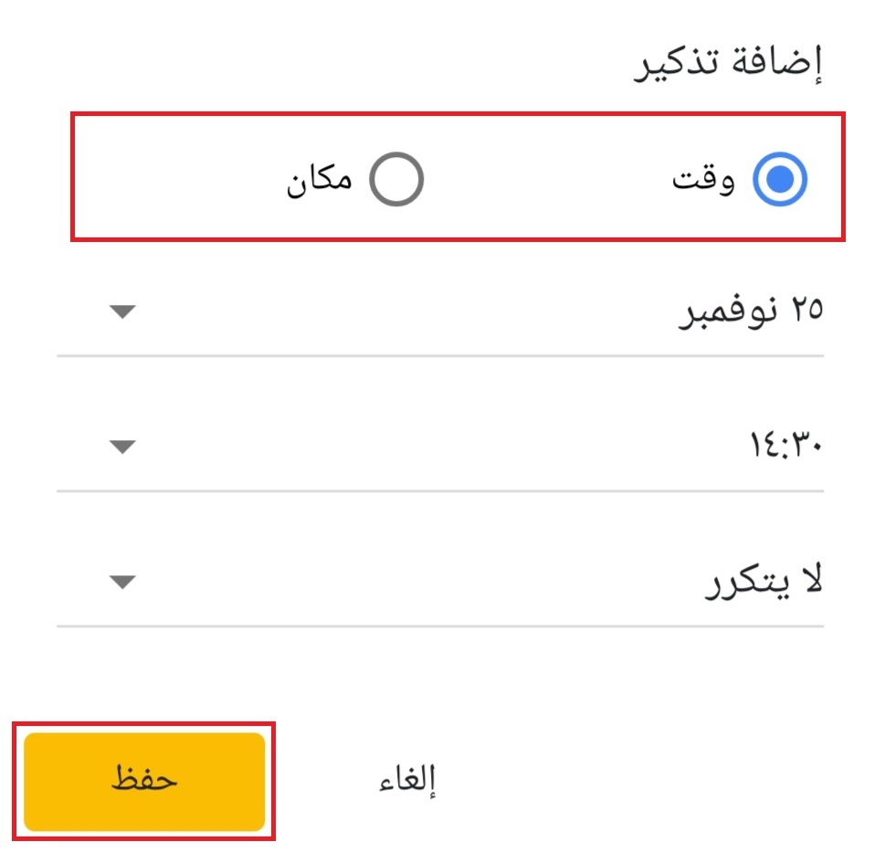 فوق في الأعلى.3. قم بتعيين تذكير الوقت أو المكان المفضل ، ثم انقر فوق [حفظ].