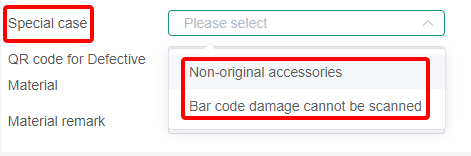In order to trace the source of materials, identify the authenticity and standardize the management of key materials, the engineer of overseas customer service center needs to manually or automatically scan and input material SN code or codes when filling the work order.