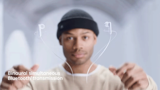 Binaural simultaneous Bluetooth transmission. Simultaneous Bluetooth Transmission. Meaning, the left/right headset will receive data at the same time.