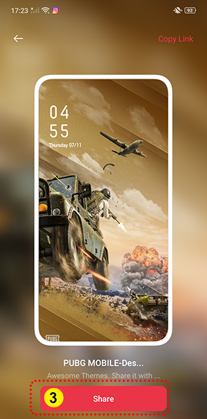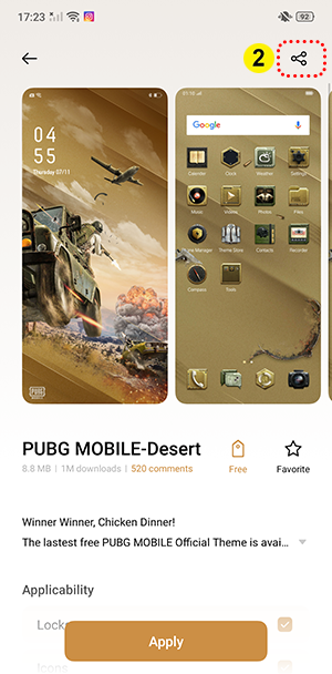 2. At the top right of the theme preview, tap the share icon on the top right corner.