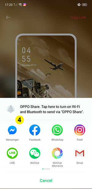 Situation: You want to share themes from HeyTap Theme Store to your friends.