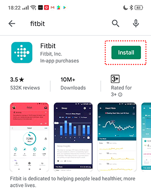 2. On the search bar, enter 'Fitbit'. The Fitbit app will appear on the search result.