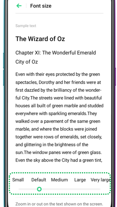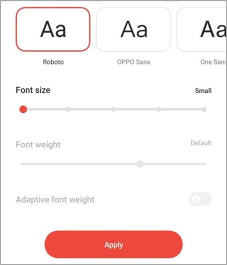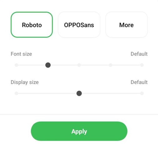 You can adjust the font and display size by sliding the bar. The new font provided by OPPO is OPPO Sans which can automatically adapt itself based on the scenario.