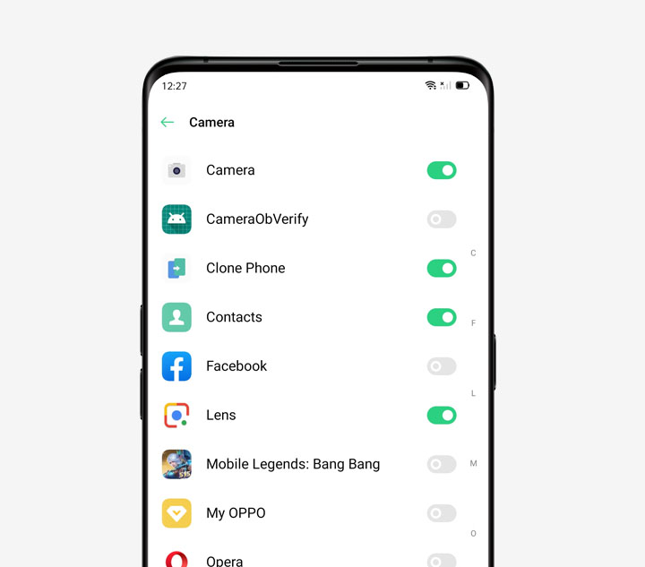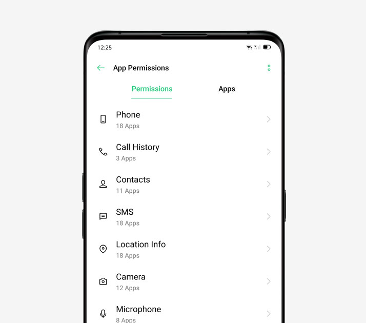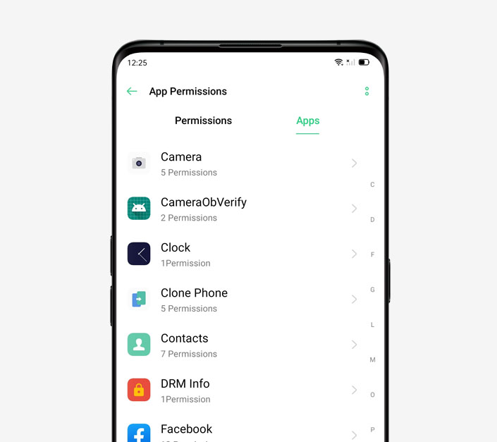 For ColorOS 6.0 to 6.1: Go to [Settings] > [Security] > [Permissions] > [Apps] and select an app you wish to change its permission and choose to allow, deny or ask.