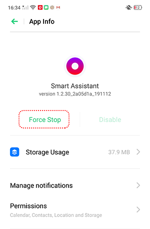 1. Force stop Smart Assistant. Go to [Settings] > [App Management] > [Show System Processes] > [Smart Assistant] > [Force Stop].