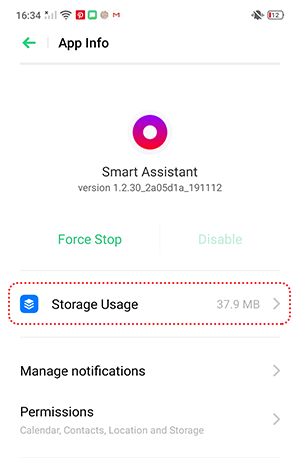 2. Tap [Storage Usage] and clear data and cache for Smart Assistant.