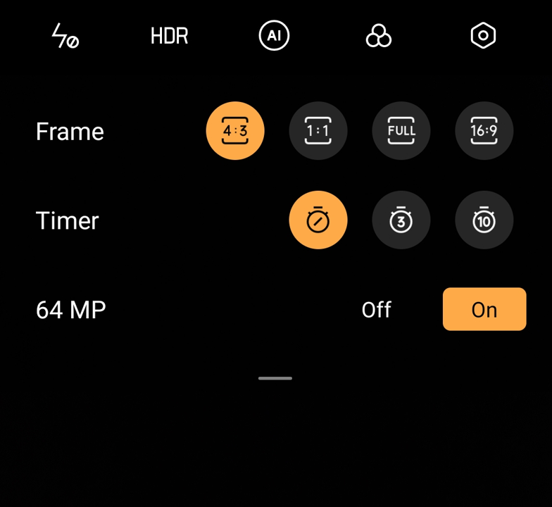 Open [Camera] > [Swipe down from above] > Tap [On] besides 64MP option.