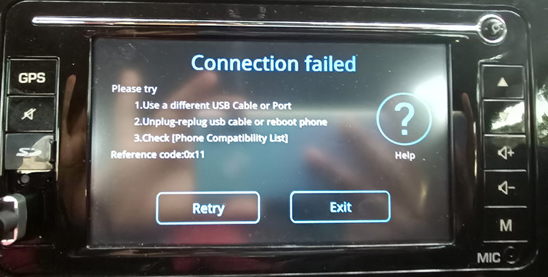 Restart the car/car stereo and reconnect.