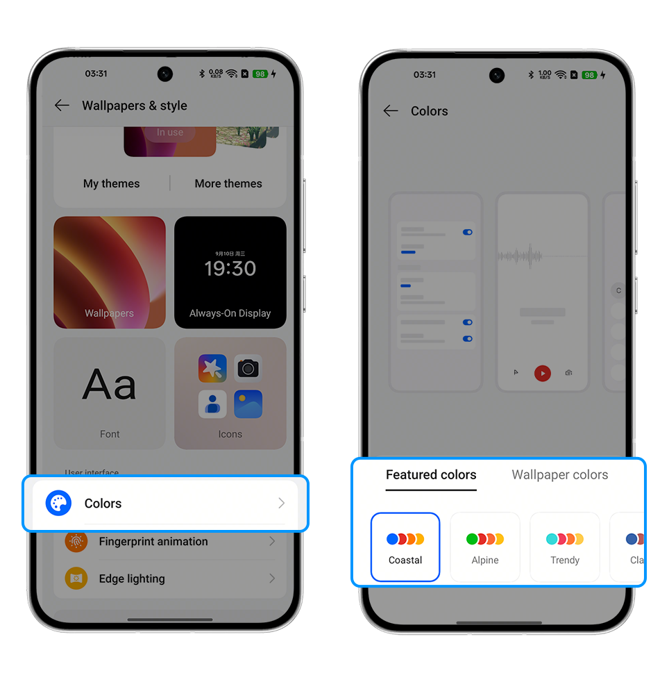 With a single tap, users can change the theme color of built-in applications on the personalization page.
