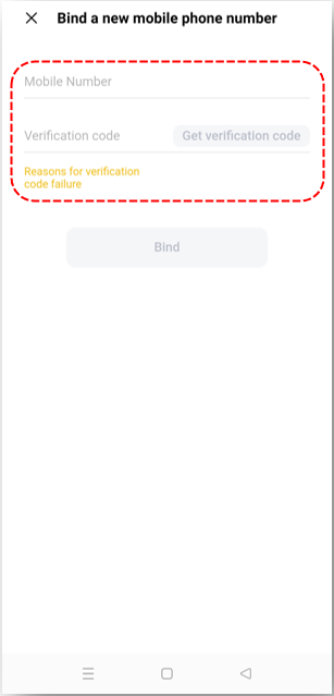 Step3: Enter your new mobile number/email, verify again via the new mobile number/email, enter the verification code and tap [Bind], thenthereplaced process iscompleted