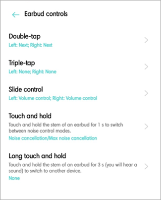 Tap [Headset]/[Earbud Functions] select the touch method and select the preferred action.