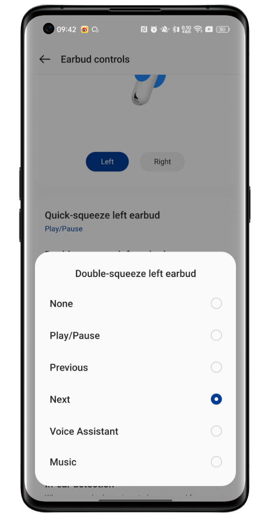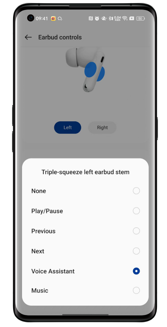Assign actions like play/pause, next/previous track, voice assistant, or noise control.