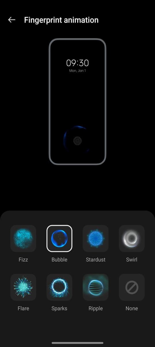 You can select the animation of the fingerprint sensor to be played when we place our finger on it.