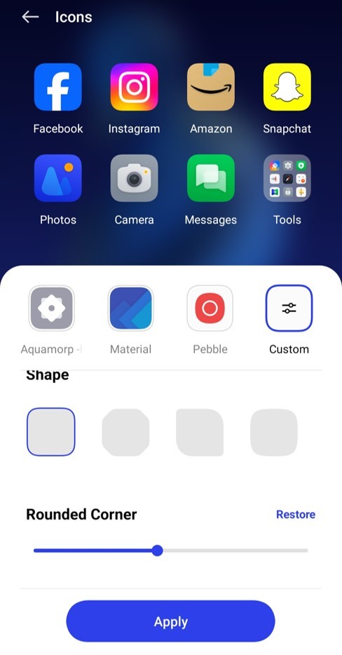 You can customize the app icon's shape, corners, and Size, as well as the app name.