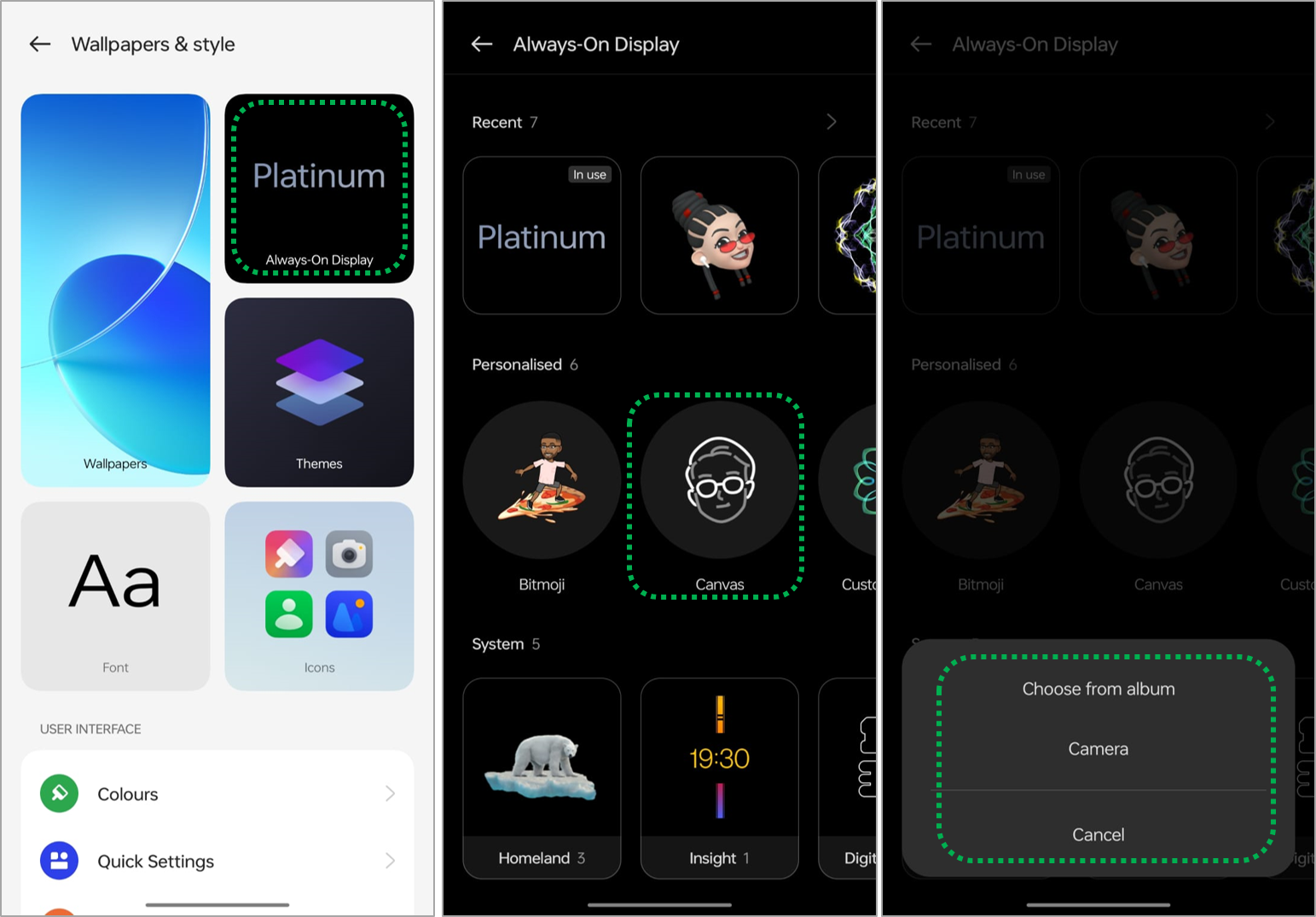 Always-On display lets you see the clock, and notifications even though the screen is OFF. You can also set personalized Bitmoji, Canvas, custom patterns, Text, Text and image, Omoji, and many more.