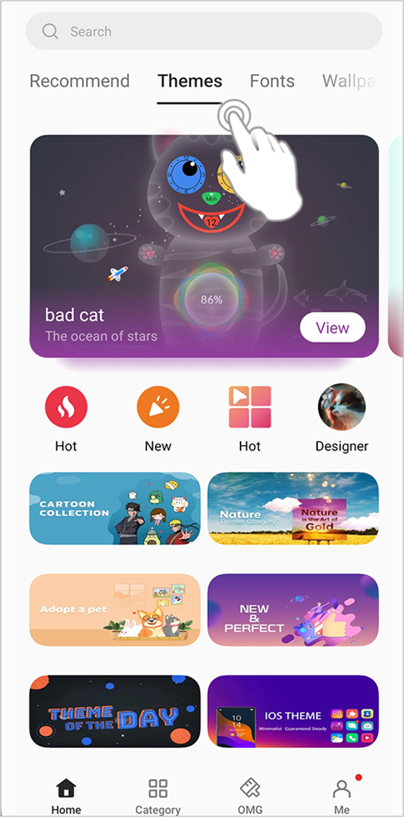 With the Themes option, you can change the interface's attributes, such as color, icon shape, icon style, and design.