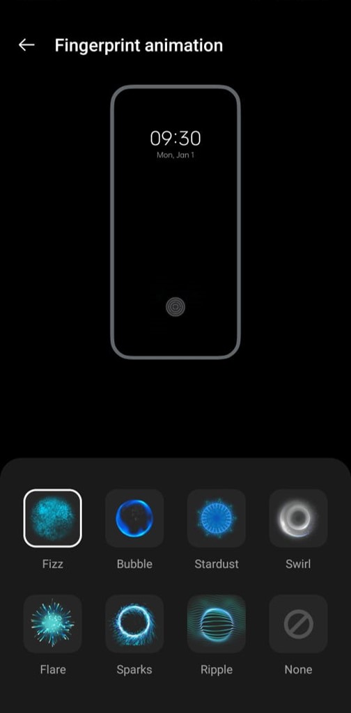 Note: Make sure that your lock screen is already set up and that a fingerprint is also added to the lock screen before changing the fingerprint animation.