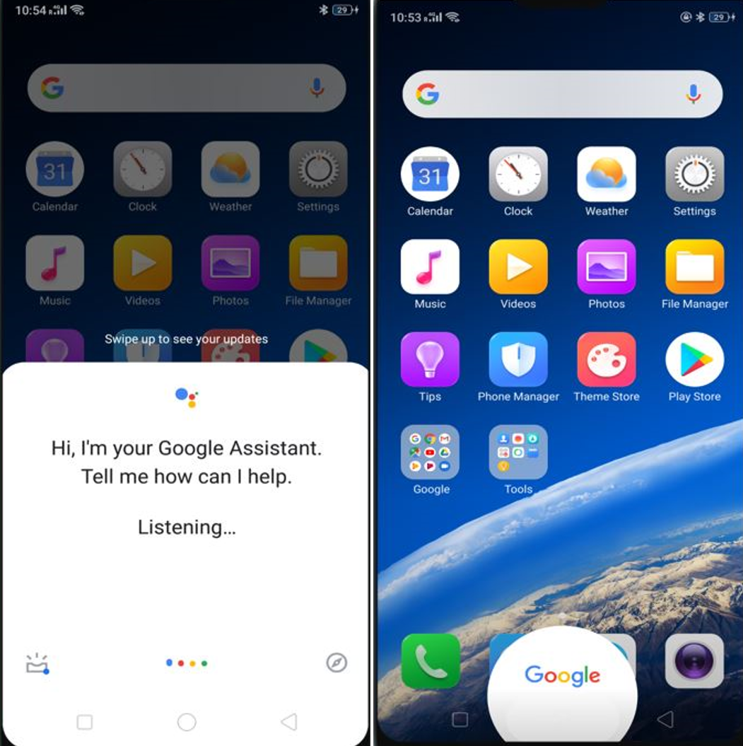 Note: The Google Assistant will turn on by pressing the Home button for a long time.