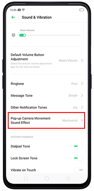 To change the camera pop-up sound, go to the [Settings] > [Sound & Vibration] > [Pop-up Camera Movement Sound Effect] and choose to the desired sound. You will hear the selected sound effect.